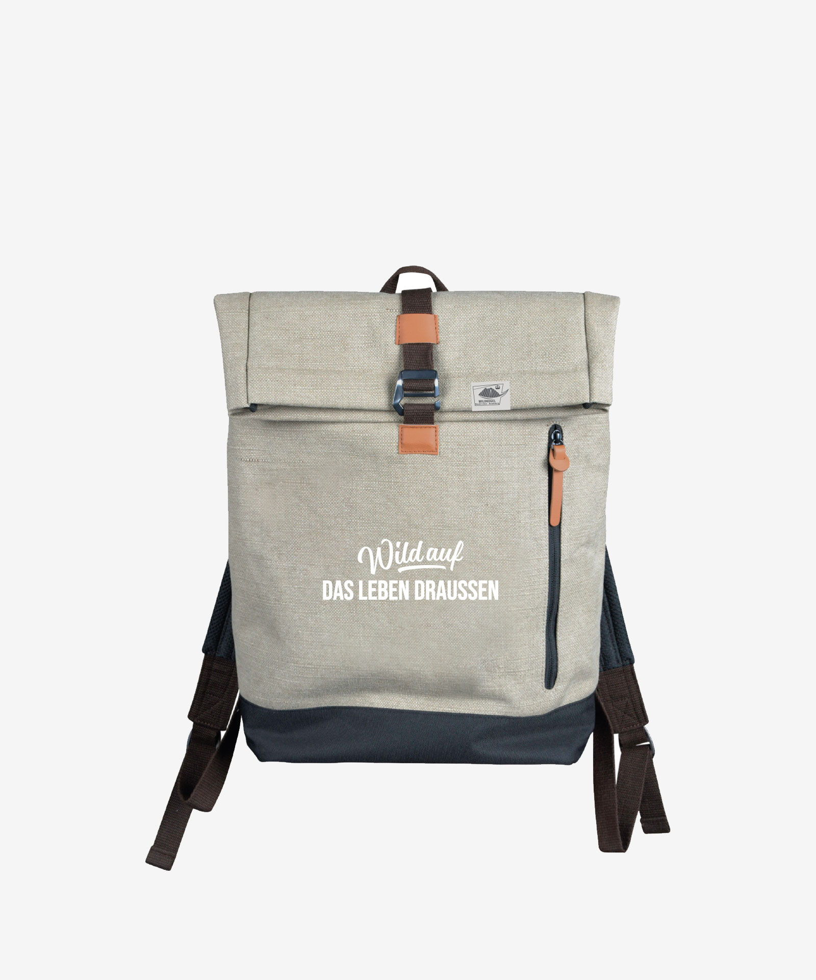 Rolltop-Rucksack aus robustem Canvas mit Kunstlederapplikationen; geräumiges Hauptfach mit zusätzlichen Steckfächern innen und einem Reißverschlussfach; Zipptaschenfach außen; Rücken und längenverstellbare Schulterriemen gepolstert; außen wasserabweisend; waschbar; gefüttert